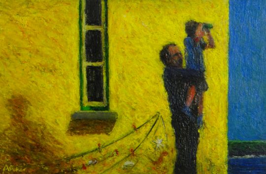 PHILIP ARCHER pastel on paper, a pair - entitled verso ‘Sea Wall’ and ‘Birds of Rhianon’, signed, each 14 x 20cms