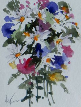 ANDREW DOUGLAS FORBES watercolour on card - still life study of flowers, 10 x 7.5cms
