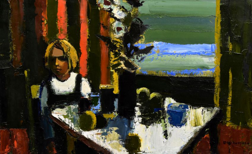 DONALD McINTYRE oil on board - seated female looking out to the sea, entitled verso ‘Window to the Sea’, signed, 63 x 102cms