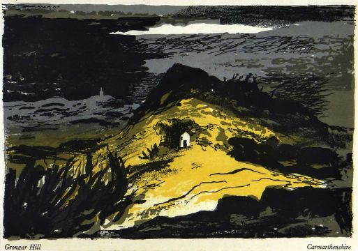 JOHN PIPER prints a trio - entitled verso ‘Roman Amphitheatre Near Ffestiniog’, ‘Grongar Hill, Carmarthenshire’ and ‘Trawsfynydd, Gwynedd’, 17 x 19cms