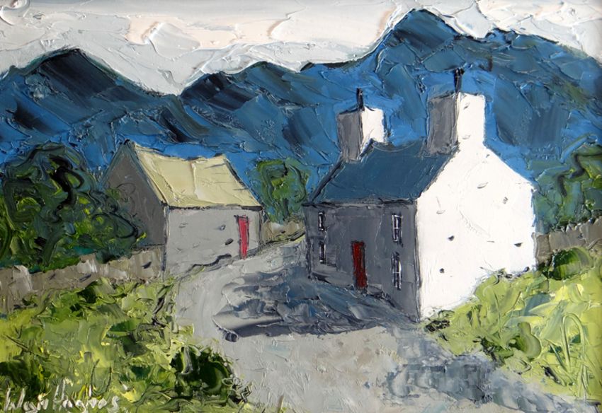 WYN HUGHES oil on board, Snowdonia cottages, signed, 17 x 24cms
