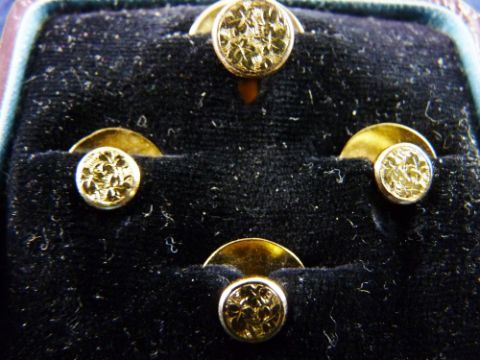 A CASED SET OF FOUR FIFTEEN CARAT GOLD BRIGHT CUT CUFFLINKS, 4.2 grms total