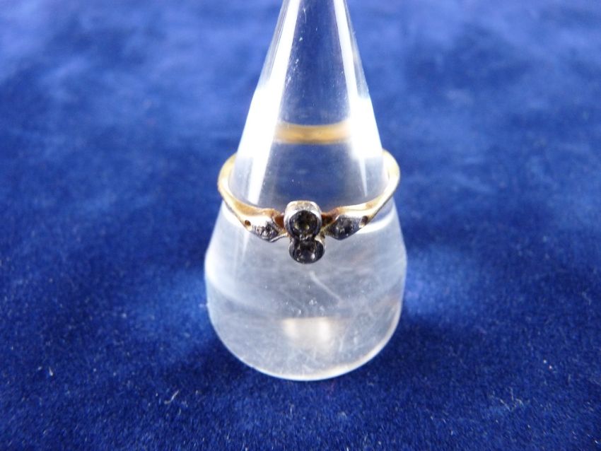 AN EIGHTEEN CARAT GOLD DRESS RING, 1.8 grms with four tiny round cut diamonds