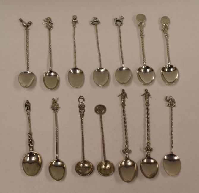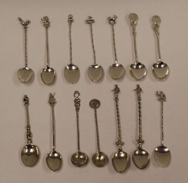 A COLLECTION OF CONTINENTAL SILVER SPOONS WITH TWIST STEMS including a set of five and two pairs, 142gms