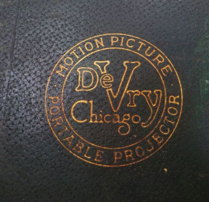 A DEVRY CHICAGO MOTION PICTURE PORTABLE PROJECTOR in a green leather effect case Provenance: from the estate of Welsh film director and television figure, John Hefin MBE