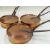 A SET OF THREE COPPER LIDDED SAUCEPANS each with long fitted iron handles to the lids and bodies and each body and lid impressed with a crown mark and letter 'S', 2 x 39cms & 1 x 36cms diam