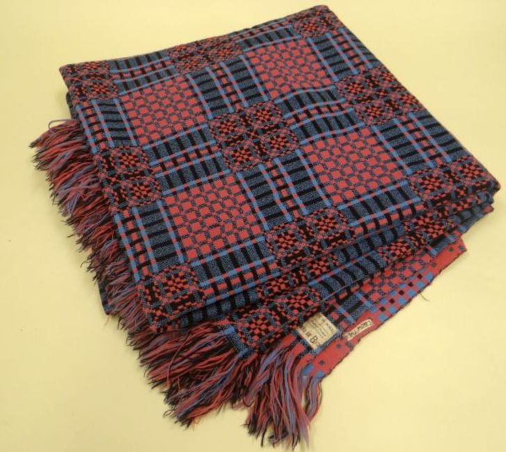 A WELSH WOOL BLANKET in multi-coloured chequer design, 217 x 202cms