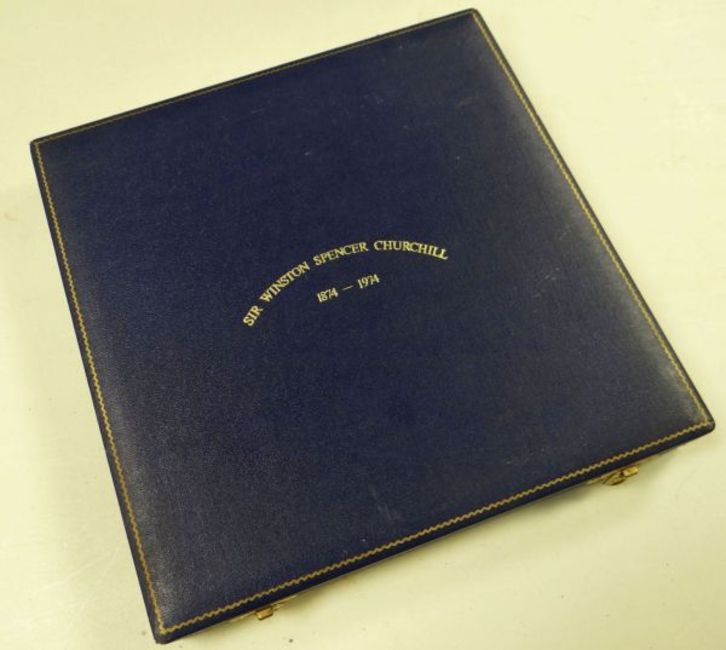 A WINSTON CHURCHILL CENTENARY COMMEMORATIVE SILVER DISH with inscription and dates, complete with matching case, dated 1974, by Walker & Hall, 11.1ozs