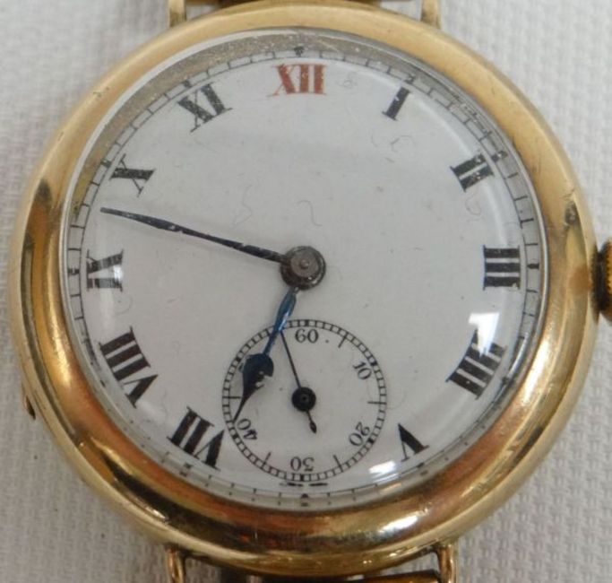 A GENT'S GOLD ENCASED WRISTWATCH in 9ct yellow gold with white enamel dial and non-matching rolled gold bracelet