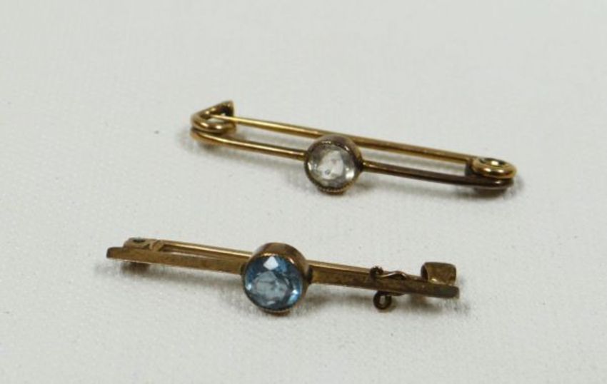 A DIAMOND SOLITAIRE BAR BROOCH & AQUAMARINE SIMILAR, diamond size approx 0.6ct