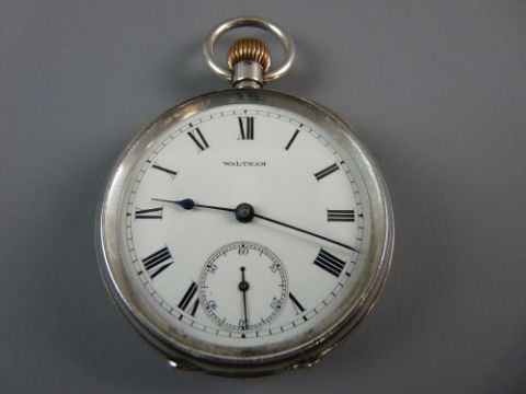 A WALTHEM USA GENT'S SILVER POCKET WATCH, the white enamel dial set with Roman numerals and subsidiary seconds dial, engine turned decoration to case back, the interior marked 0.935 and no. 83069, the movement inscribed 'AM.Watch.Co, Walthem Mass, Bond Street, no. 11978180'