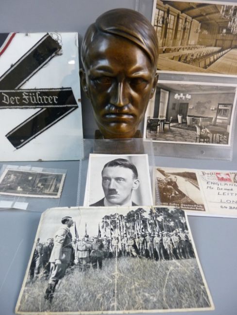 AN ADOLF HITLER BRONZE BUST 'Der Fuhrer' SS Cuff title and other memorabilia
