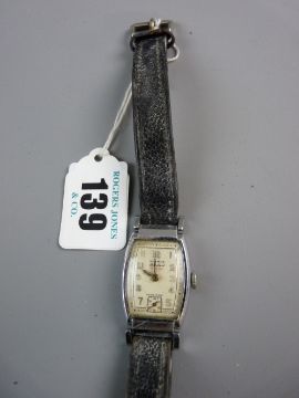 A LADY'S ROAMER STANDARD WRISTWATCH, stainless steel encased having an oblong dial and leather strap