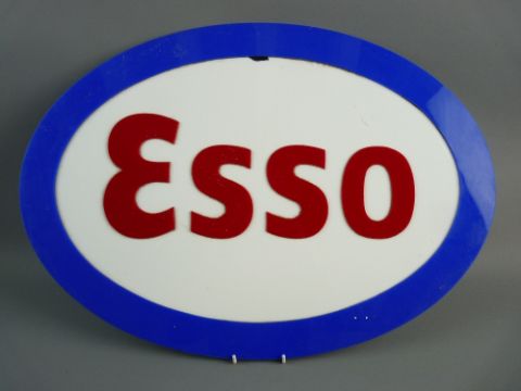 A PERSPEX OVAL ESSO GARAGE SIGN, 60 cms wide approximately (slight damage within the white area)
