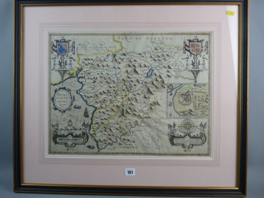 A COLOURED AND TINTED MAP of Merionethshire, George Humble edition, 39 x 51 cms
