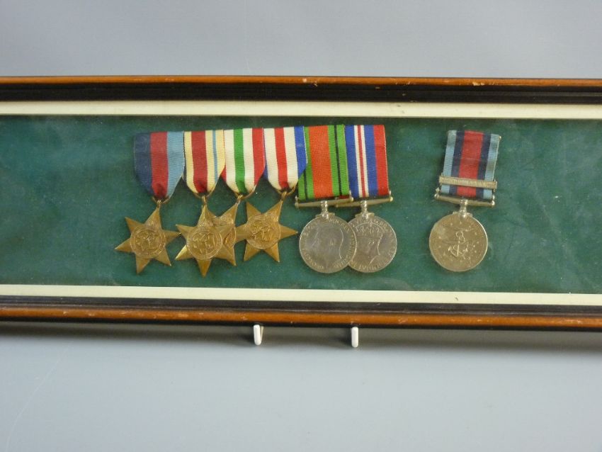 MEDALS - A WWII GROUP OF SIX with Normandy campaign to include 1939-1945 Star, Africa, Italy and France & Germany Stars, 1939-45 Defence medal and War medal, all unmarked, the Normandy campaign medal with clasp, numbered 13573, mounted and framed for display