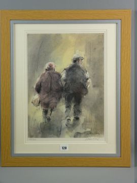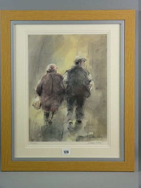 WILLIAM SELWYN coloured limited edition (177/500) print - lady and gent shopping, signed in full, 42 x 30 cms
