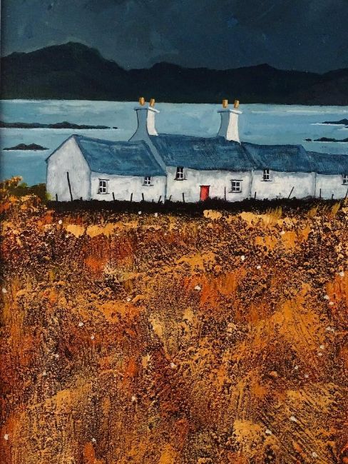 GWYN OWEN acrylic on board - Rhoscolyn, Anglesey with whitewashed cottages, signed, 56 x 35.5cms