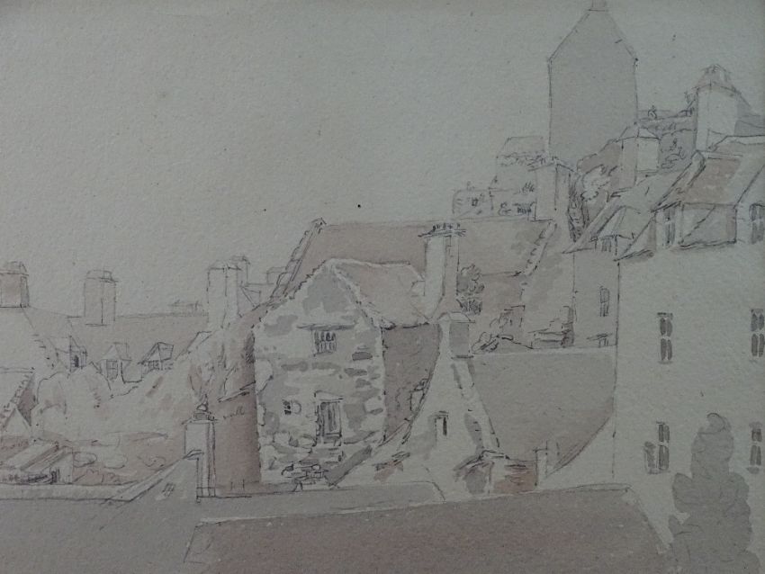 MARY BUCKLE watercolour and pencil - view of Barmouth Town, unsigned but with Miles Wyn Cato label verso and dated August 3rd, 1819 and inscribed verso, 23 x 32.5 cms