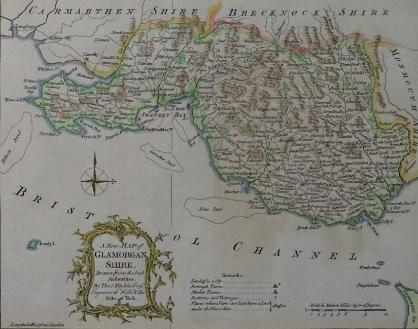 THOMAS KITCHIN & UNATTRIBUTED two coloured and tinted maps - one of Glamorganshire, 25 x 20cms and the other of Monmouthshire, similar period, 15.5 x 19.5cms