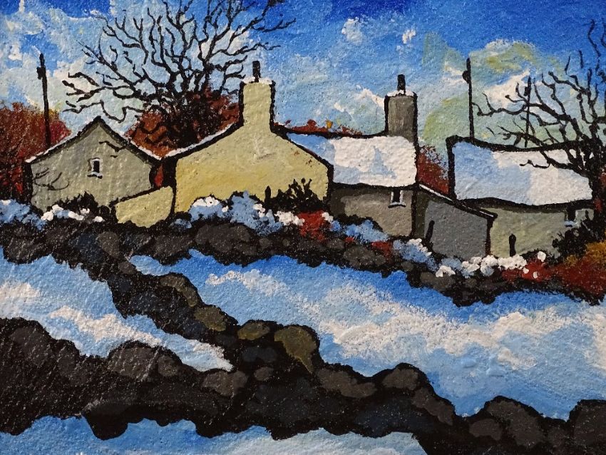 STEPHEN JOHN OWEN oil on canvas - cottages in heavy snow, signed initials and with Albany Gallery label verso, 24.5 x 29.5cms
