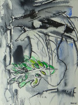IWAN BALA mixed media on paper - map of Wales with vegetation and traditional Welsh hat entitled 'Beca', signed and dated 2004, 21 x 16cms