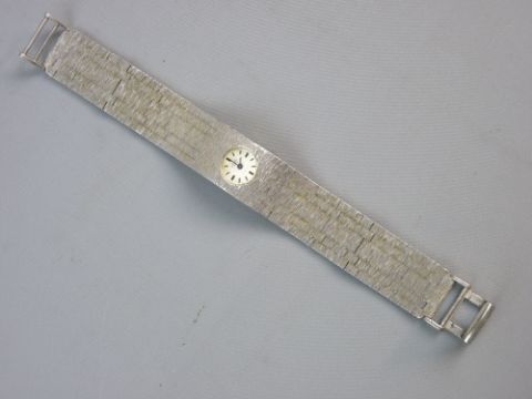 A LADY'S WHITE METAL BARK EFFECT CIRCULAR DIAL ROTARY COCKTAIL WATCH and with incorporated dial