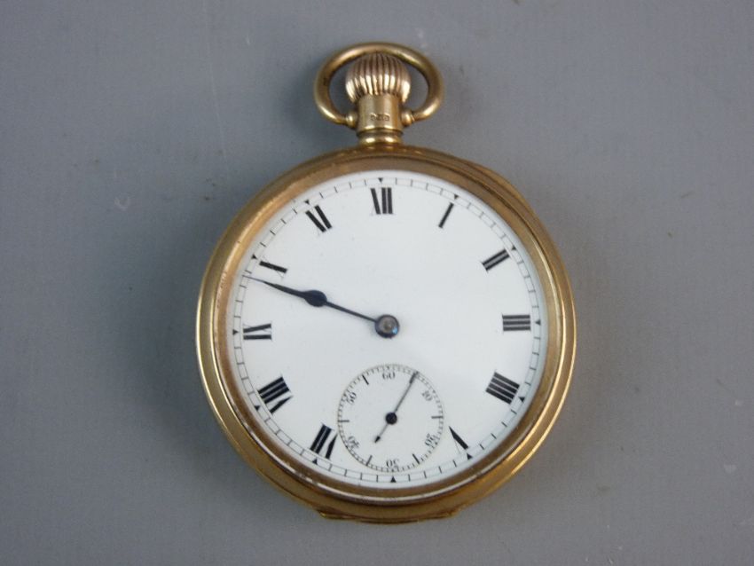A NINE CARAT GOLD CASED DENNISON OPEN FACED POCKET WATCH, the white enamel dial set with Roman numerals and subsidiary seconds dial, keyless movement, 90 grms gross, the case marked 'Dennison' to the interior, 9.375 Birmingham