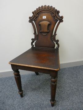 A VICTORIAN MAHOGANY SHIELD BACK HALL CHAIR, 87 cms high