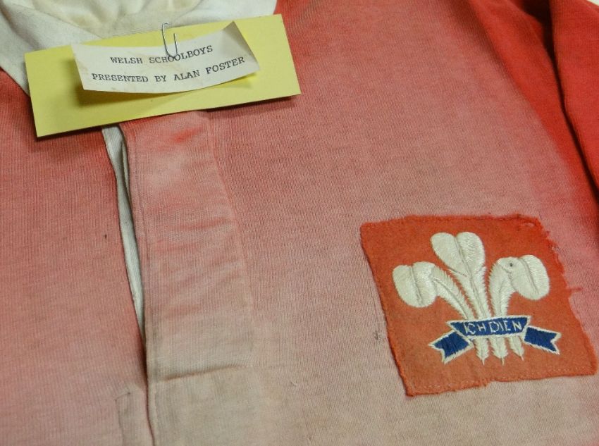A WALES MATCH-WORN INTERNATIONAL SCHOOLBOYS JERSEY the breast with stitched panel felt badge and stitched panel No.12 to the reverse, RW Forsyth outfitter's badge internally, circa 1950s Provenance: Llandaff North Rugby Sports& Social Club Ltd