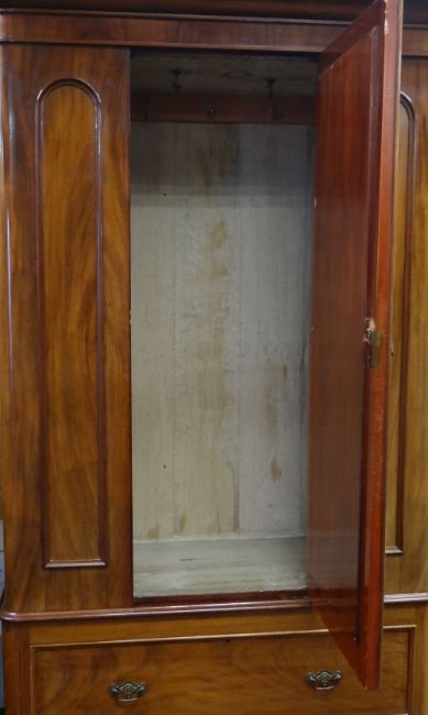 A VICTORIAN MAHOGANY MIRRORED WARDROBE with single base drawer, 126cms wide
