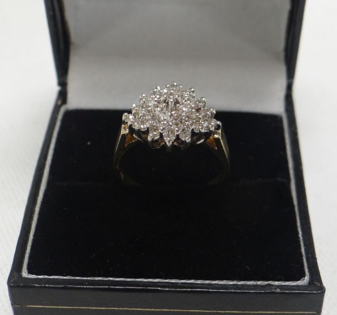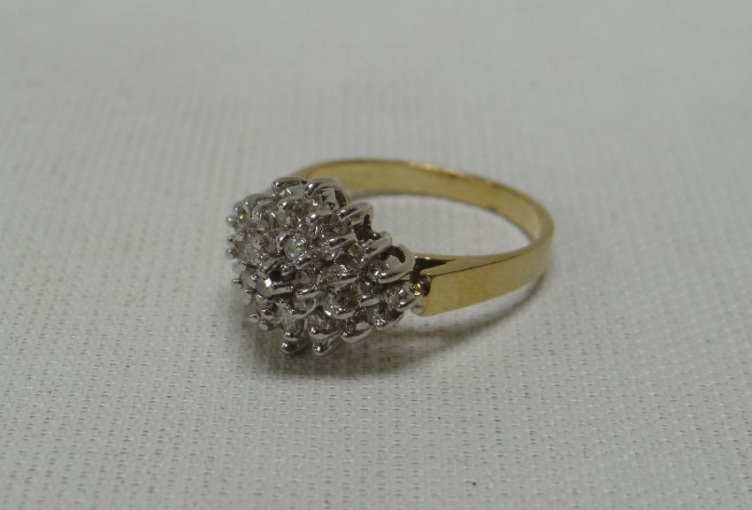 A DIAMOND CLUSTER & 14K RING, 4.3gms