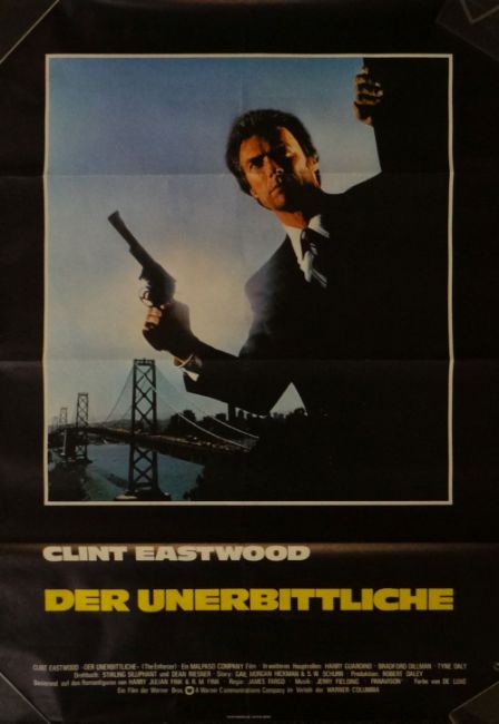 THREE ORIGINAL GERMAN ONE SHEET FILM POSTERS - 'MAGNUM FORCE', 'DIRTY HARRY', 'THE ENFORCER' starring Clint Eastwood, folded, each 33 x 23.5 inches