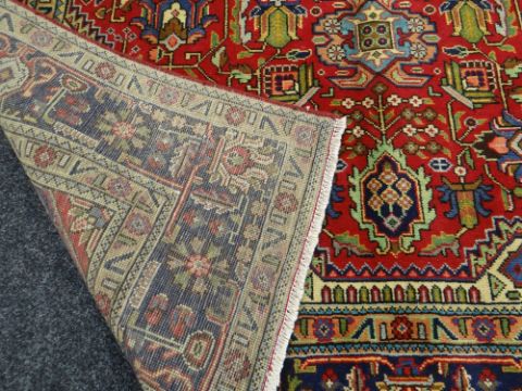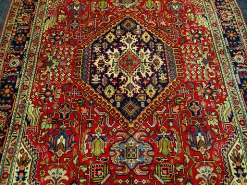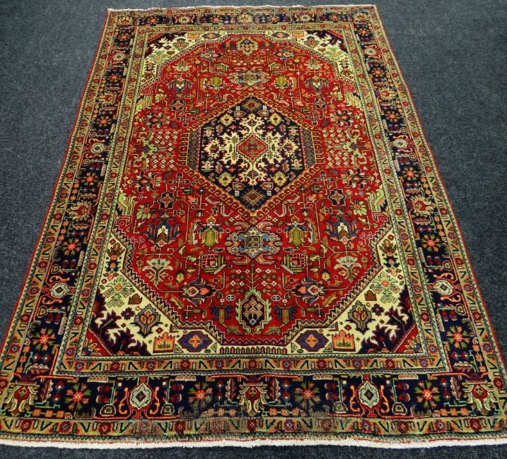 A PERSIAN TABRIZ CARPET multicoloured unique medallion design, 298 x 192cms
