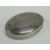AN OVAL WHITE METAL TOBACCO BOX with hinged lid, the base and lid with sgraffito decoration and inscribed JOHN EDWARDS, 1910, ABERYSTWYTH, and with maker stamped inside as SAM THOMAS TREHERBERT, 7cms long