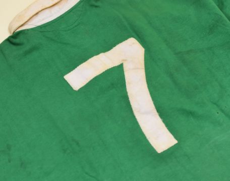 YR URDD RUGBY UNION 1972 JUBILEE MATCH JERSEY WORN BY JOHN TAYLOR bearing stitched No.7 to the reverse and stitched Yr Urdd badge, bearing Umbro badge internally, this match was notable as Barry John's last game of rugby Provenance: Llandaff North Rugby Sports& Social Club Ltd