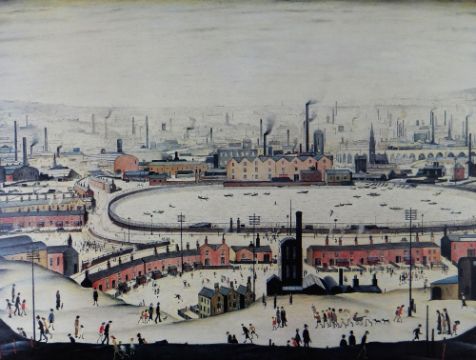 L. S. LOWRY signed print - entitled 'The Pond' with printers embossed stamp to bottom left, 46 x 59cms