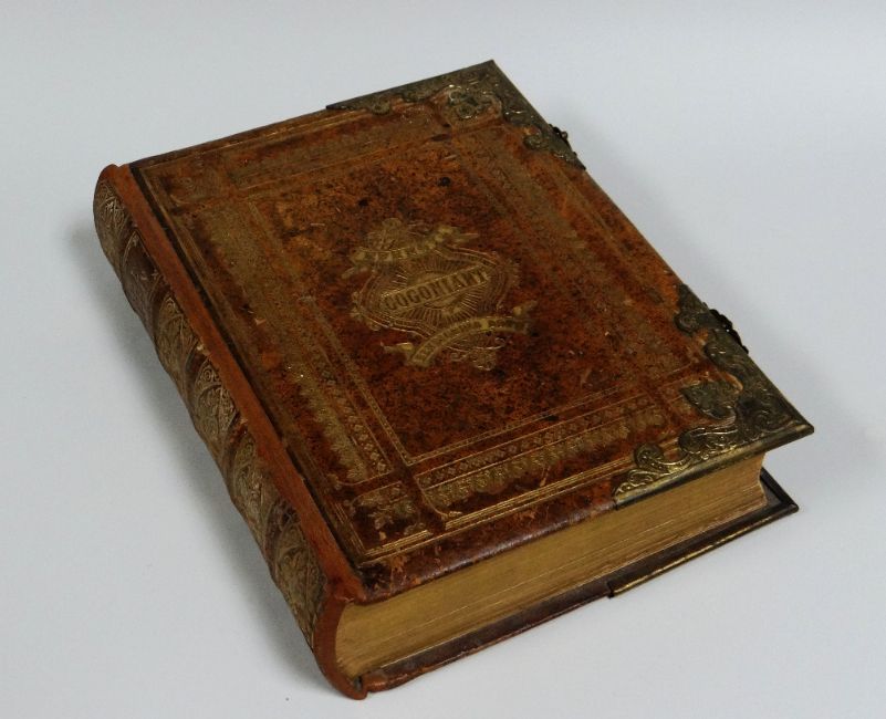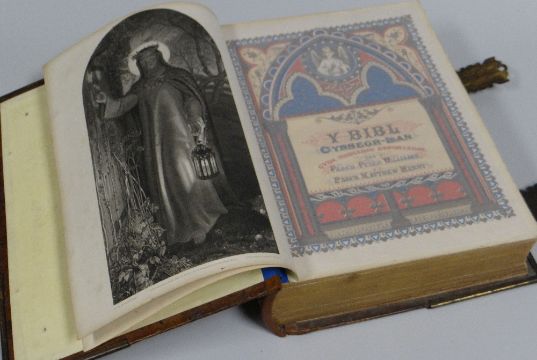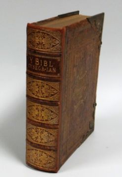 A NINETEENTH CENTURY BRASS MOUNTED FAMILY BIBLE IN WELSH / BRASS BEDWAREDD GANRIF AR BYMTHEG GOSOD FAMILY BEIBL YN GYMRAEG