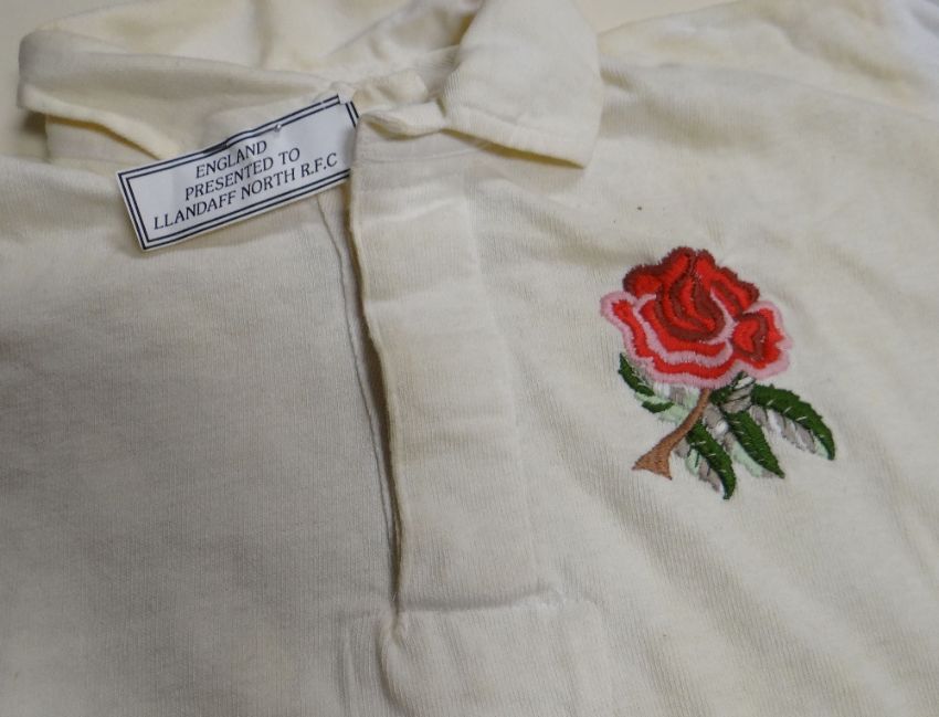 AN ENGLAND INTERNATIONAL RUGBY UNION SQUAD JERSEY, bearing stitched felt No. 19 to reverse and internal Umbro label, circa 1960s Provenance: Llandaff North Rugby Sports& Social Club Ltd
