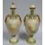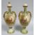 A PAIR OF CROWN DEVON 'GAME' PATTERN VASES with twin handles and of campana form, 36cms high (damage)