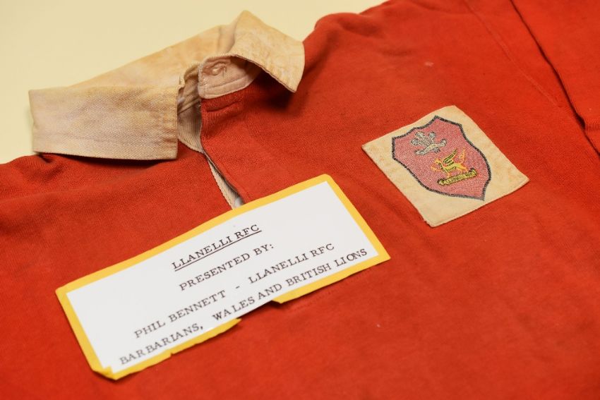 A LLANELLI RUGBY UNION JERSEY NO.10 PRESENTED & BELIEVED TO BE WORN BY PHIL BENNETT, stitched badge and No.10 to panel on reverse, bears Umbro label internally, 1960s Provenance: Llandaff North Rugby Sports& Social Club Ltd