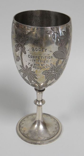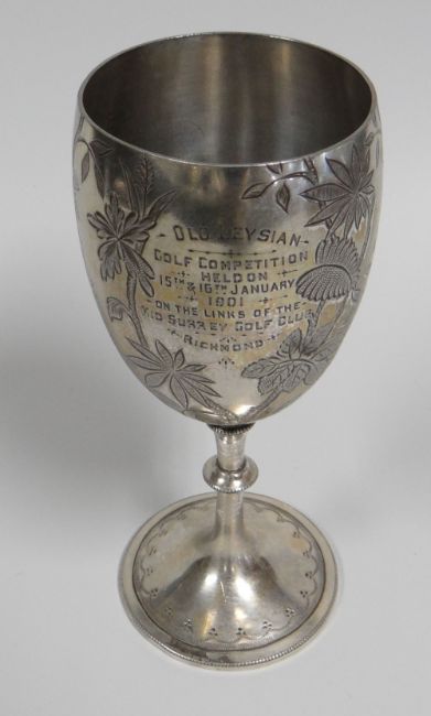 AN EPNS GOLFING TROPHY CUP inscribed 'Old Leysian - Golf Competition, held on 15th & 16th January 1901, on the links of the Mid Surrey Golf Club, Richmond'