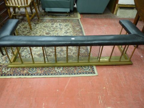 A VICTORIAN BRASS CLUB FENDER, black padded top on twist spindles and stepped base, 43 cms high, 175 cms wide, 58 cms maximum depth