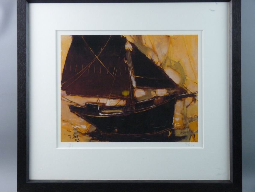 LIMITED EDITION (12/295) coloured print - a yacht, indistinctly signed, 32 x 41 cms