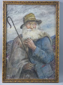 ELIZABETH BROCKBANK watercolour - 'Old Ike' the iconic Cumbrian shepherd, 50 x 34 cms