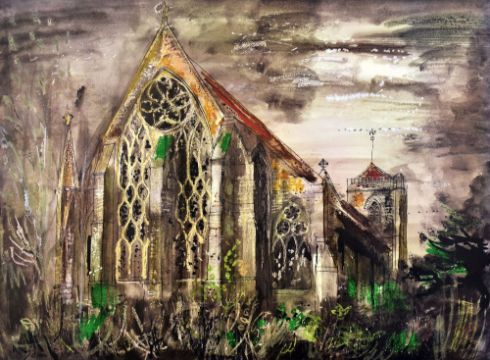 JOHN PIPER colour print - study of 'Dorchester Abbey', believed to be produced by Goldmark or Marlborough Gallery, 68 x 87cm (unframed)