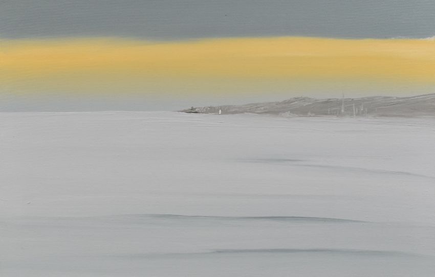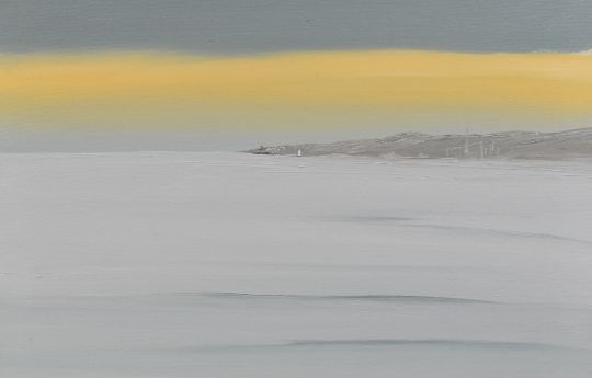 NICK JOHN REES acrylic on canvas - sea and headland, entitled verso 'View from Sully Island - Evening', signed with artist's address verso, 50 x 76cms