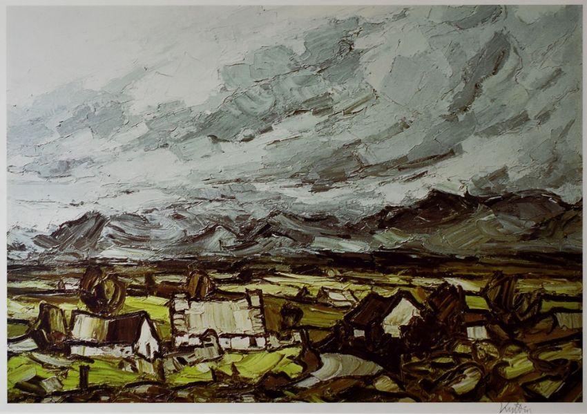 SIR KYFFIN WILLIAMS RA coloured print - Caernarfonshire landscape with farmstead, signed in full, 32 x 46cms