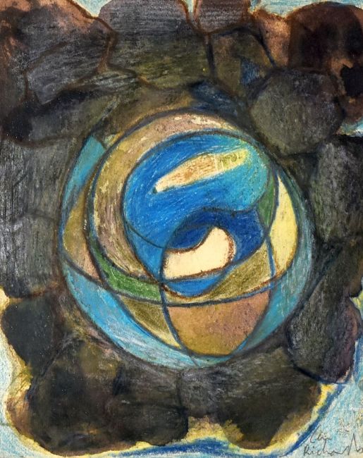 CERI RICHARDS crayon, pen and ink on paper - abstract entitled verso on Julian Lax gallery label 'Le Poisson d'Or after Image by Claude Debussy', dated 1960, signed, 17 x 13cms