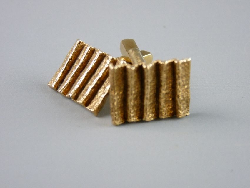 A PAIR OF NINE CARAT GOLD BARK-EFFECT OBLONG CUFFLINKS, boxed, 10 grms